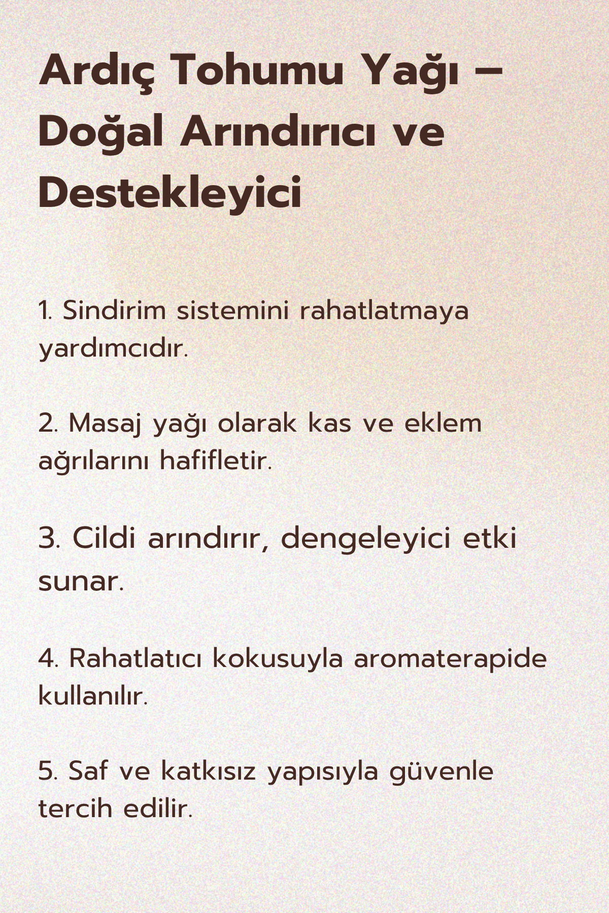 Saç bakımında ise, ardıç tohumu yağı saç köklerini besleyerek saçın sağlıklı uzamasını destekler ve saç derisindeki yağ dengesini sağlar.