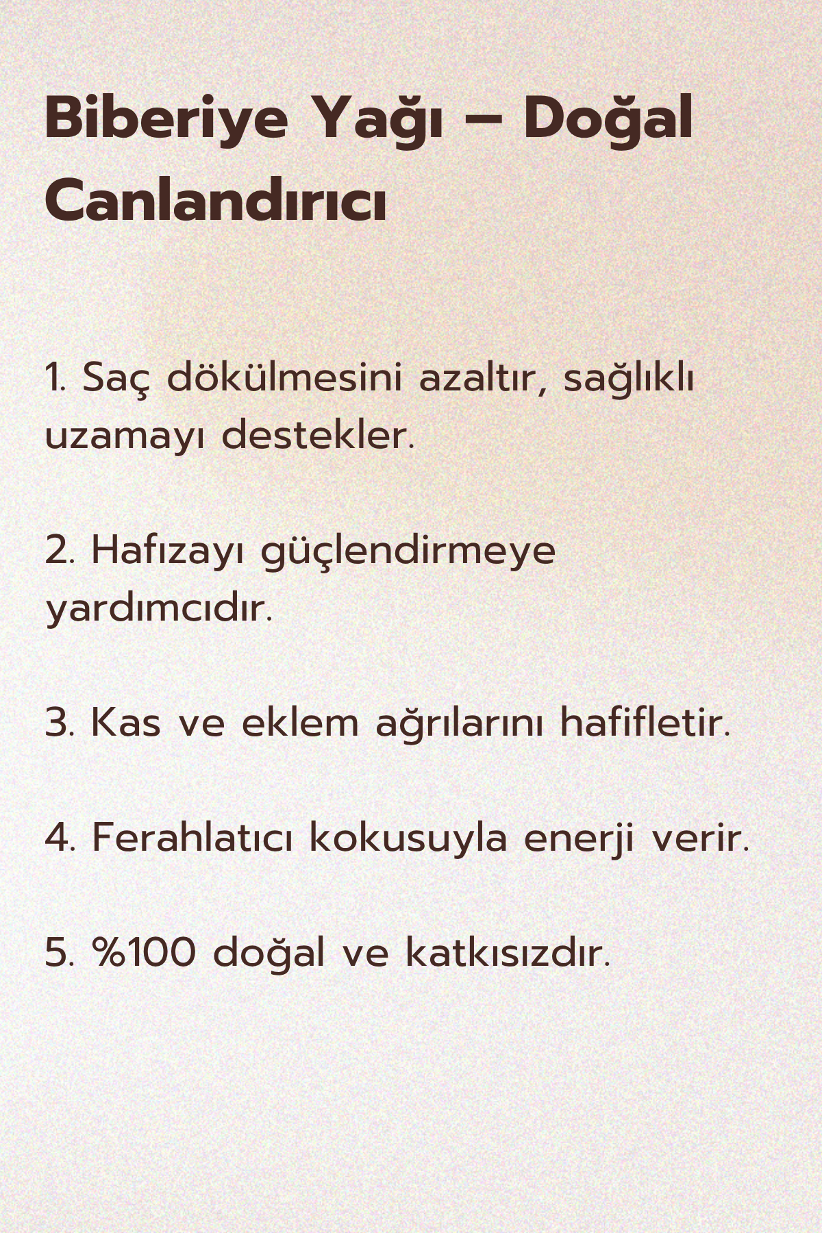 Biberiye yağı, zihni canlandırma ve hafızayı güçlendirme potansiyeli ile bilinir.