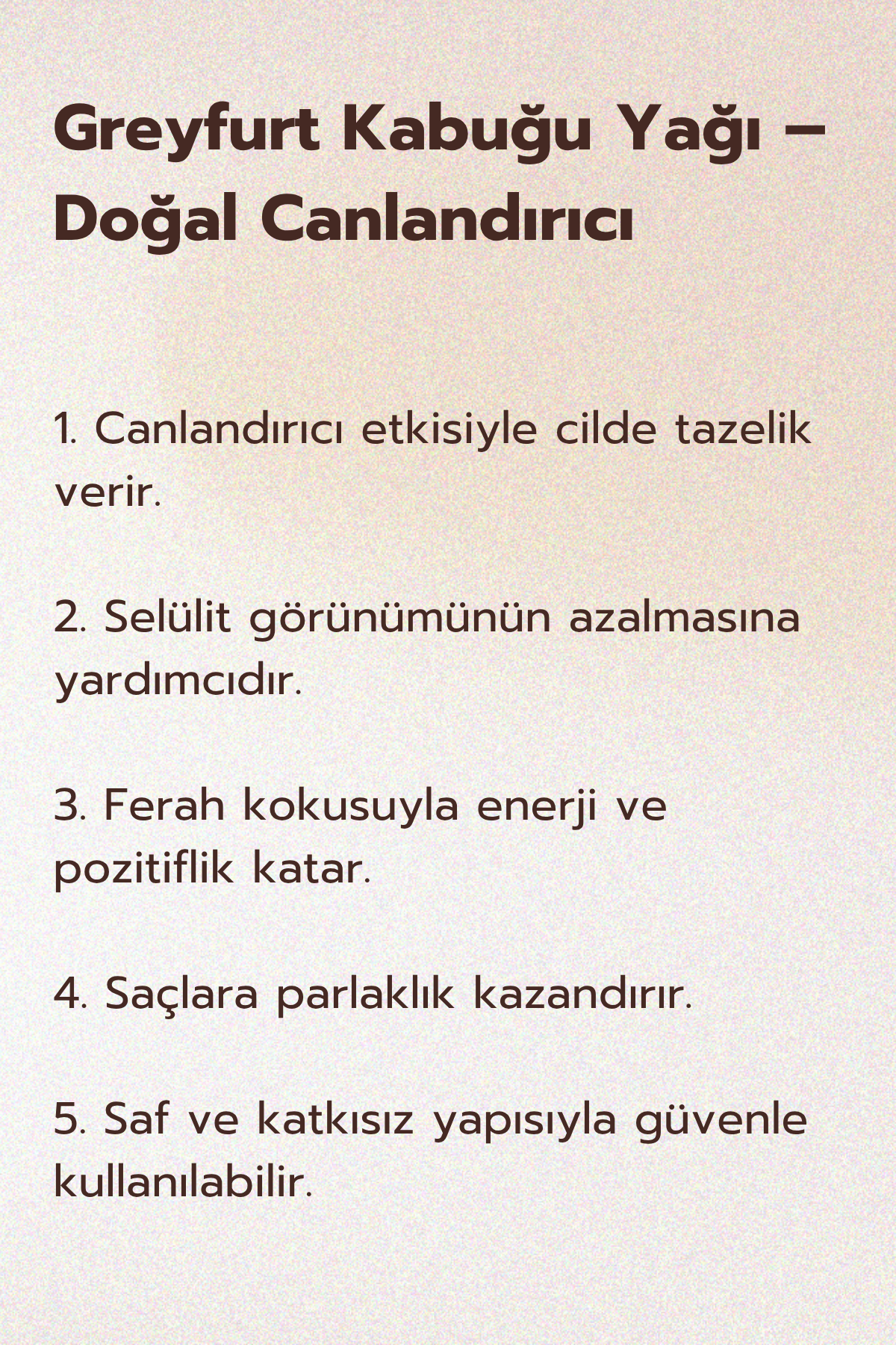 Münire Hatun Greyfurt Kabuğu Yağı Greyfurtun kabuklarından elde edilen doğal bir yağdır ve genellikle aromaterapide ve cilt bakımında kullanılır. Bu yağ, ciltteki yağ dengesini düzenlemeye yardımcı olurken, aynı zamanda ciltteki akne ve sivilcelerin görünümünü azaltır. Antibakteriyel ve antioksidan özellikleri sayesinde, cildi serbest radikallerin zararlarından korur. Greyfurt kabuğu yağı, canlandırıcı ve ferahlatıcı bir etki sağlar, ruh halini iyileştirir ve stresi azaltır. Öne Çıkan Özellikler: Antibakteriyel ve antioksidan özellikler taşır Ciltteki yağ dengesini düzenler Akne ve sivilcelerin görünümünü azaltmaya yardımcı olur Ferahlatıcı ve canlandırıcı bir etki sağlar