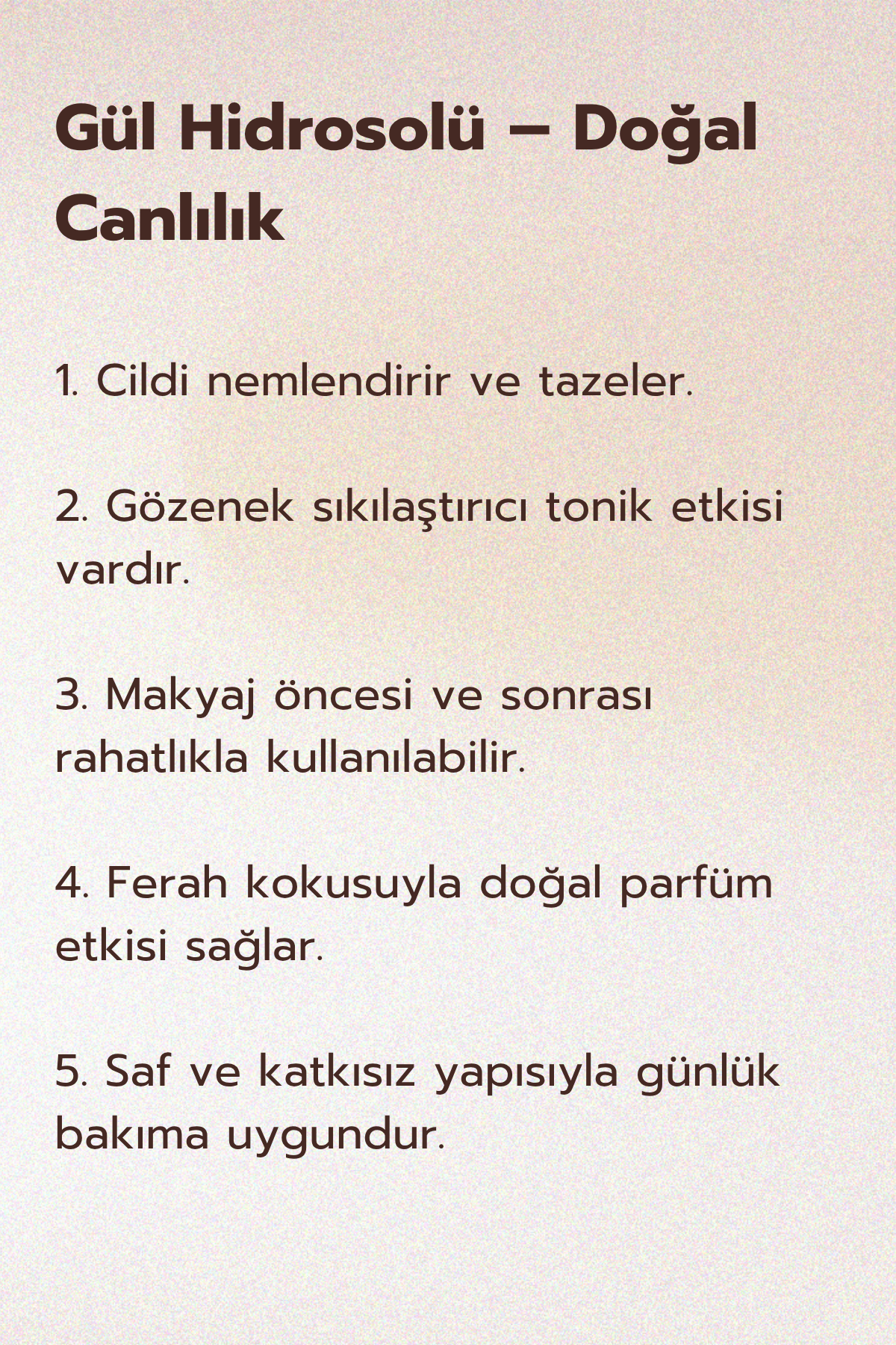 Gül yapraklarından elde edilen doğal bir su olup, cilt bakımında ve aromaterapi uygulamalarında sıklıkla tercih edilir.