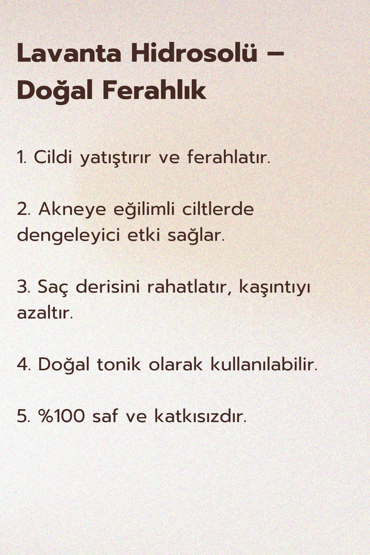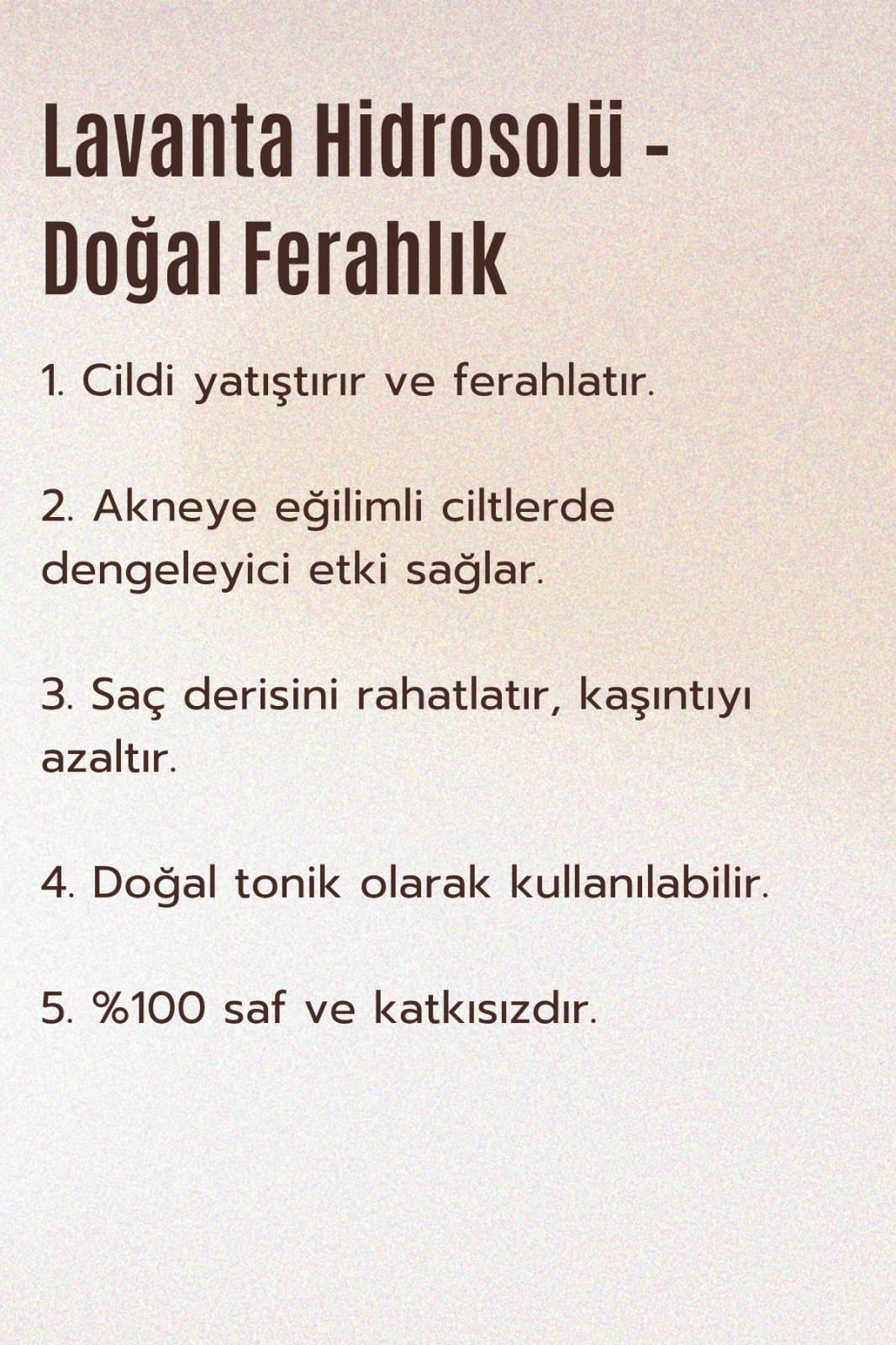 Lavanta çiçeklerinden elde edilen doğal bir su olup, yatıştırıcı ve ferahlatıcı özellikleriyle bilinir.