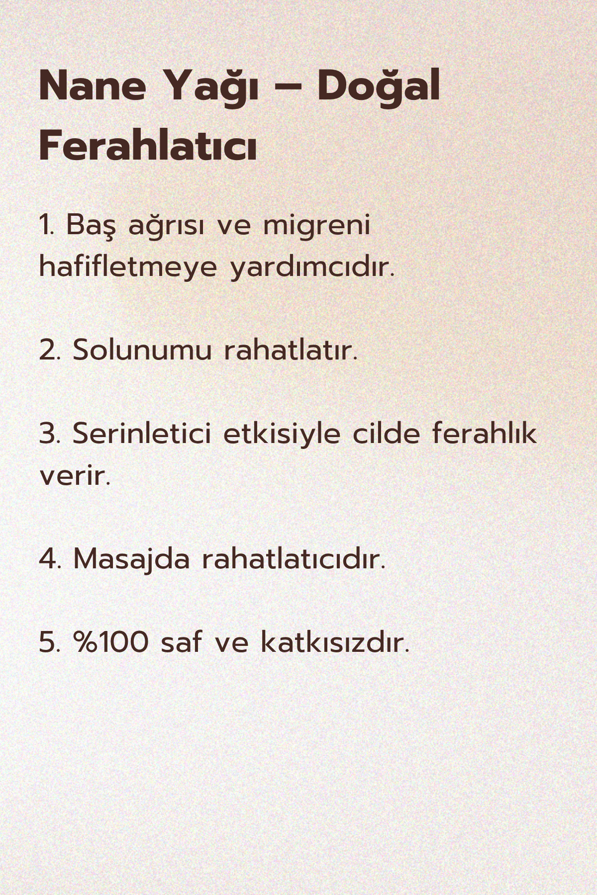 Ferahlatıcı ve canlandırıcı aromasıyla bilinen nane yağı, hem aromaterapide hem de cilt bakımında yaygın olarak kullanılmaktadır.