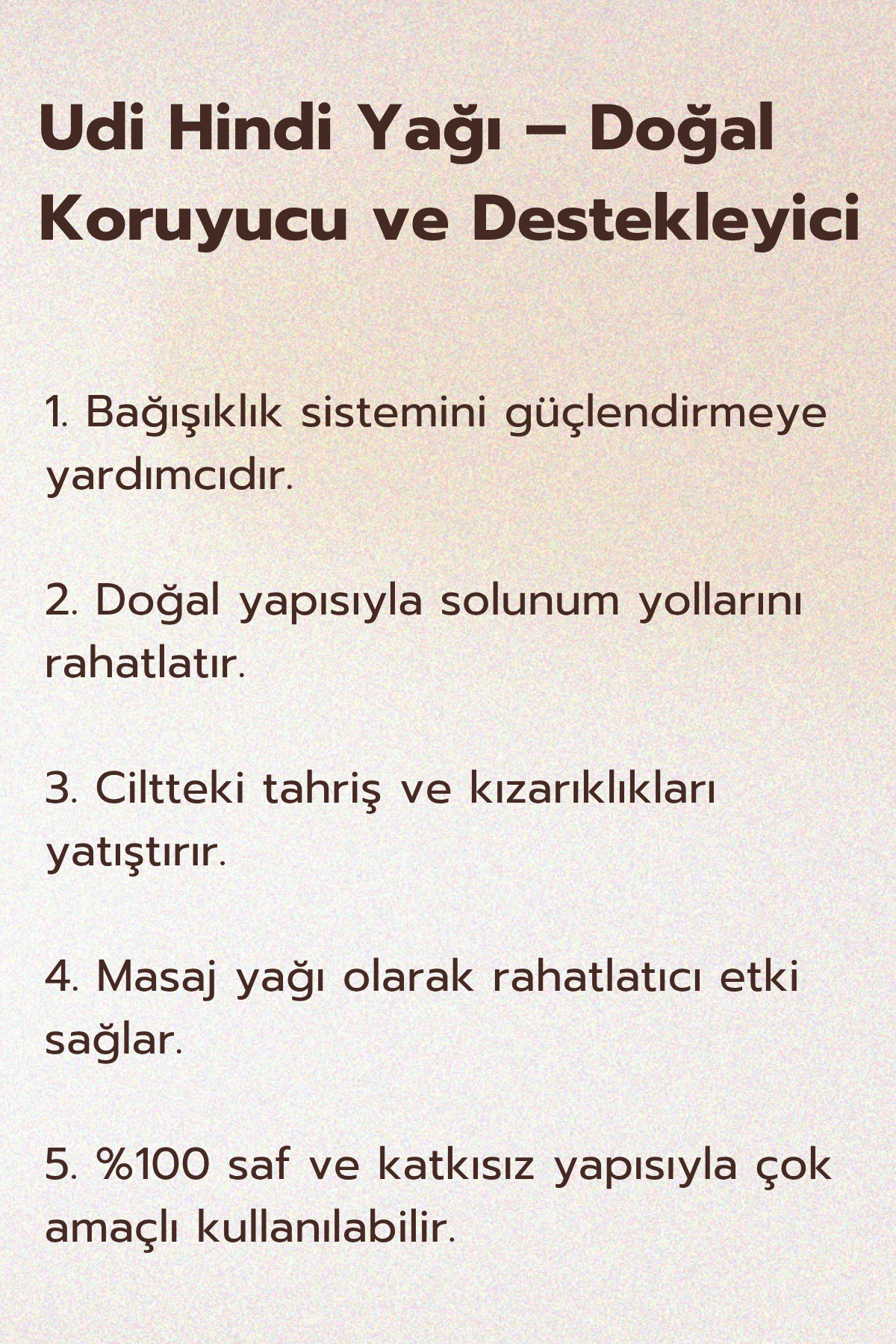 Maske olarak da kullanılabilen Udi Hindi Yağı, ölü derilerin atılmasına ve lekelerin giderilmesine destek olur.